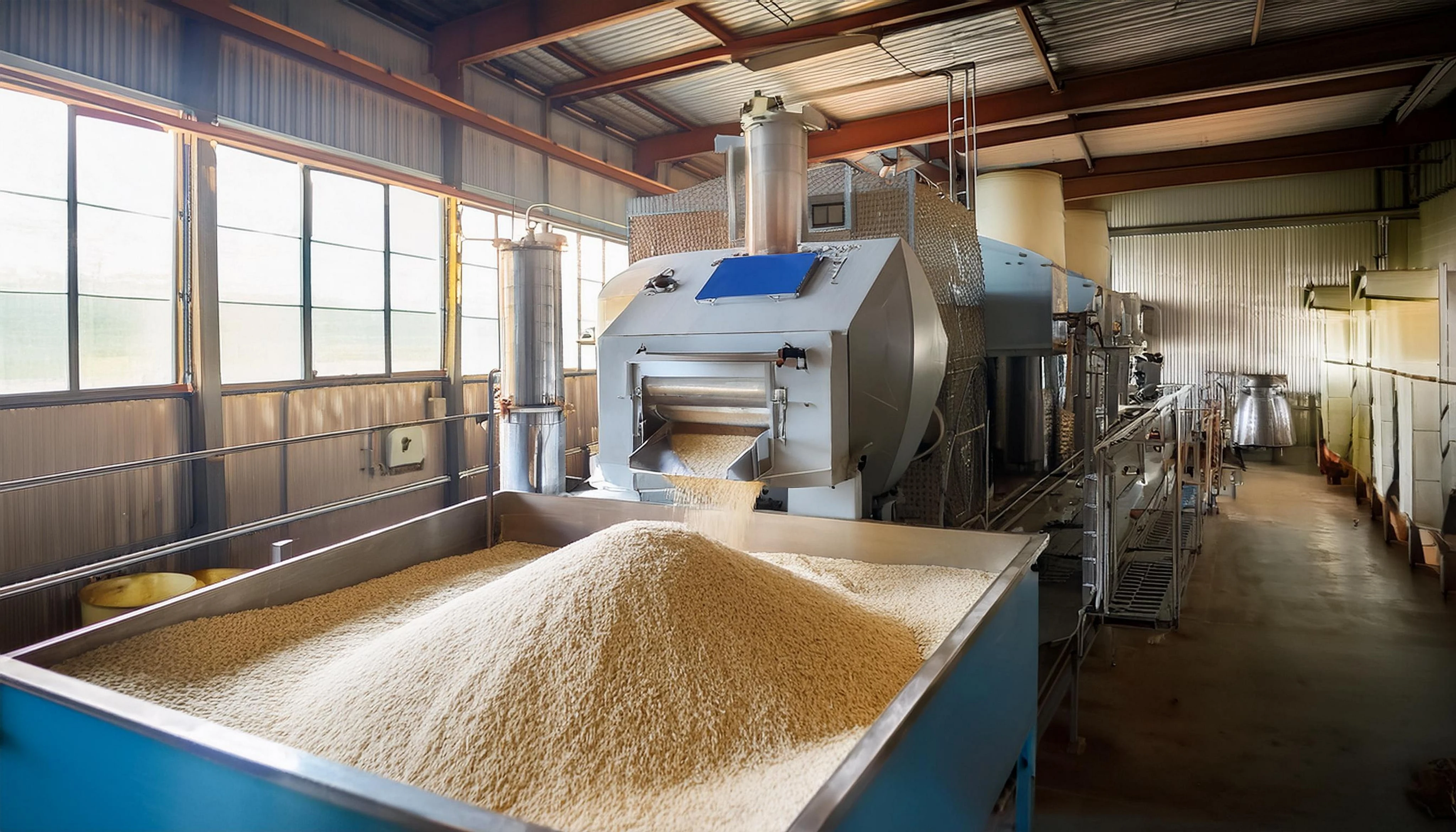 Advanced machines mill and polish grains for consistent quality.